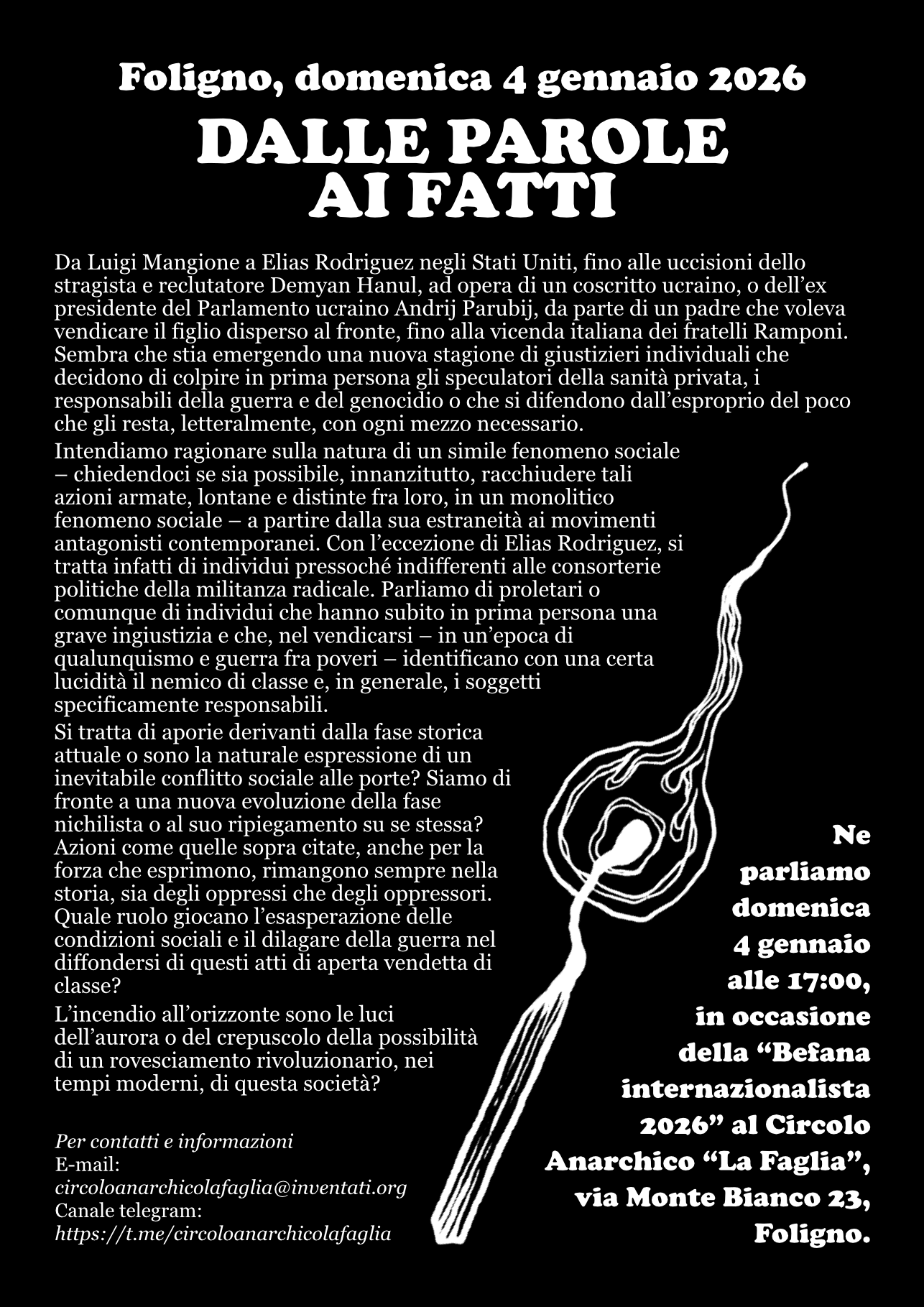 Ne parliamo domenica 4 gennaio alle 17:00, in occasione della BEFANA INTERNAZIONALISTA 2026 al Circolo Anarchico “La Faglia”, via Monte Bianco 23, Foligno.